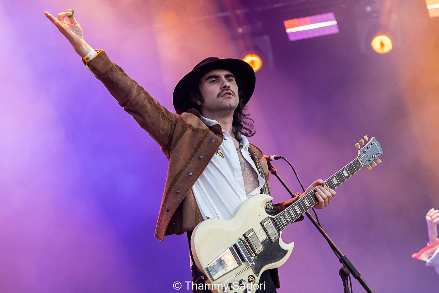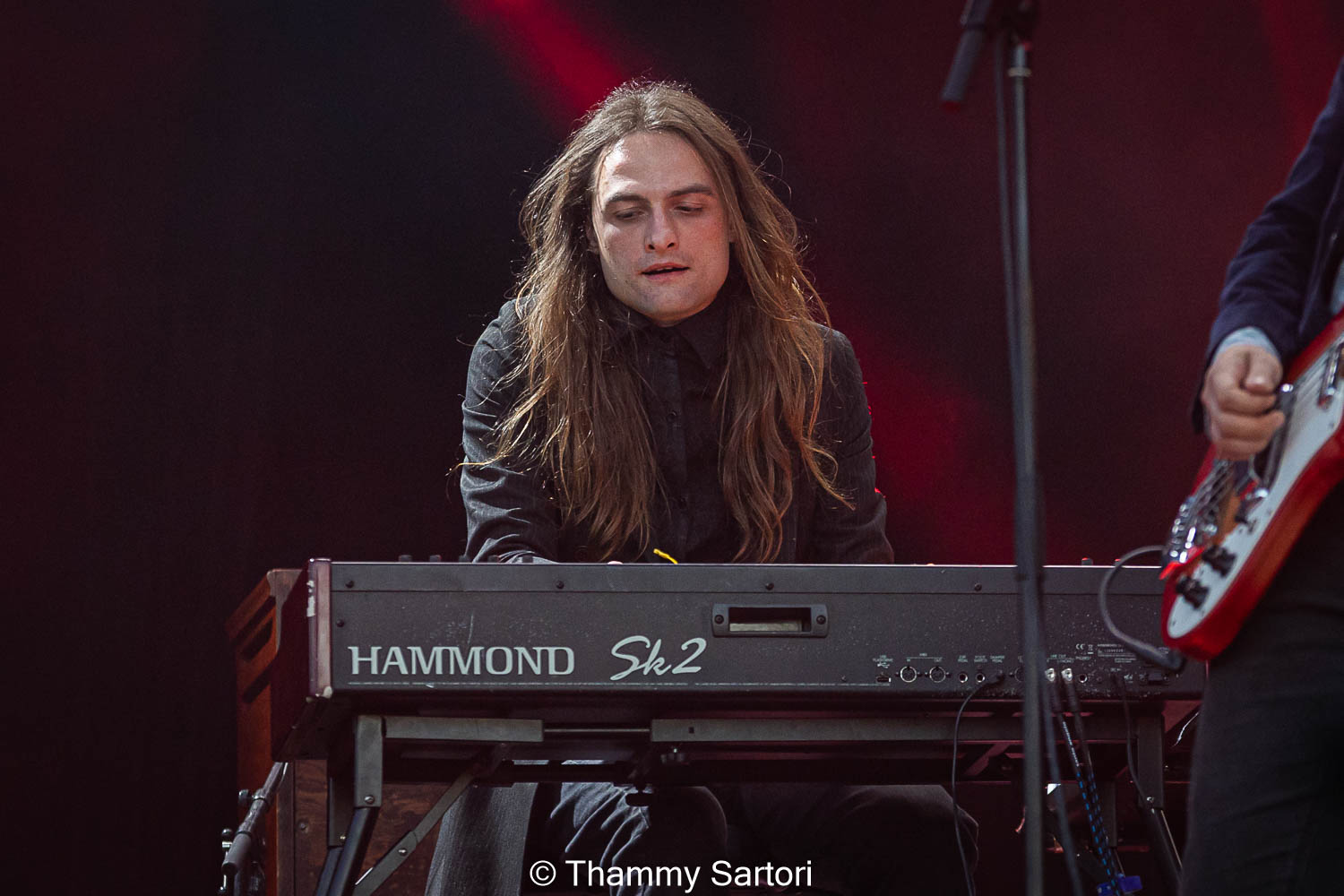 Já em cima do palco eles traziam uma pose de banda experiente e que sabia exatamente o seu papel ali. Cada membro ficava focado em seu instrumento, mas constantemente dançando e batendo os longos cabelos durante as músicas.