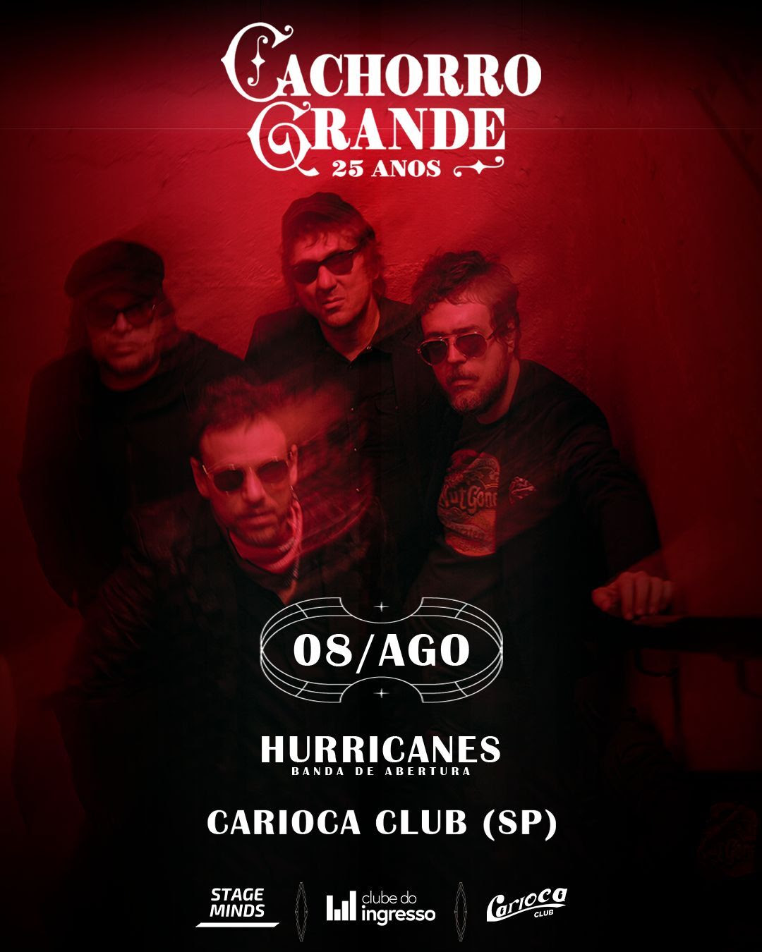 “Dividir o palco com a Cachorro Grande é muito especial pra gente. Mais do que uma influência musical, eles são parte da nossa história, das nossas referências e daquilo que nos fez acreditar no rock nacional. É unânime entre nós que fomos muito influenciados pelo som e pela atitude da Cachorro. Estar lado a lado com ídolos é daqueles momentos que a gente espera muito viver e que guarda para a vida inteira”, diz o vocalista do Hurricanes, Rodrigo Cezimbra.