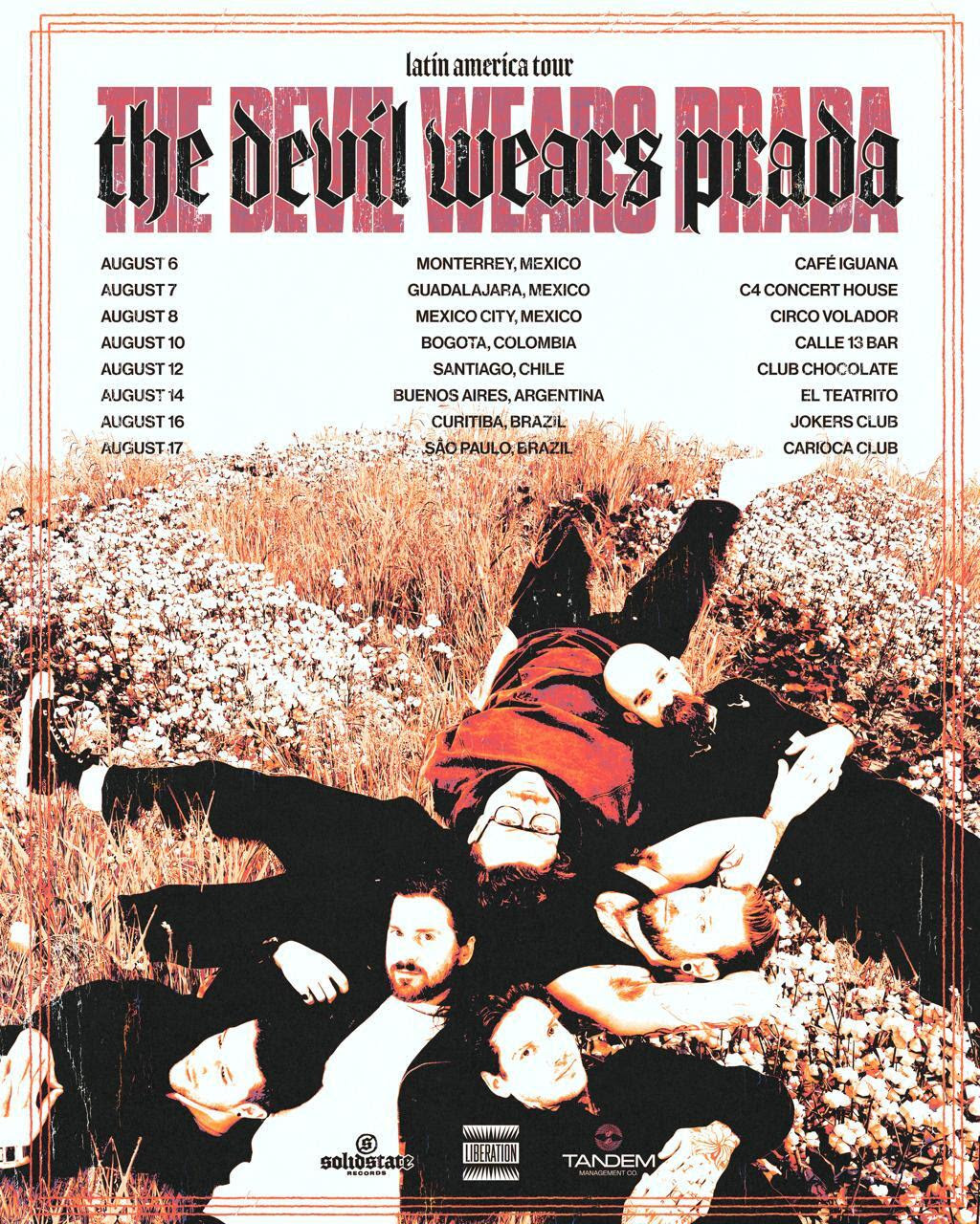 O The Devil Wears Prada voltou à América Latina após 13 anos e o esperado retorno da banda norte-americana de metalcore moderno ao Brasil, que encerra a turnê, acontece nos dias 16/08 em Curitiba (Jokers) e dia 17/08 em São Paulo (Carioca Club). A realização é da Liberation Music Company.