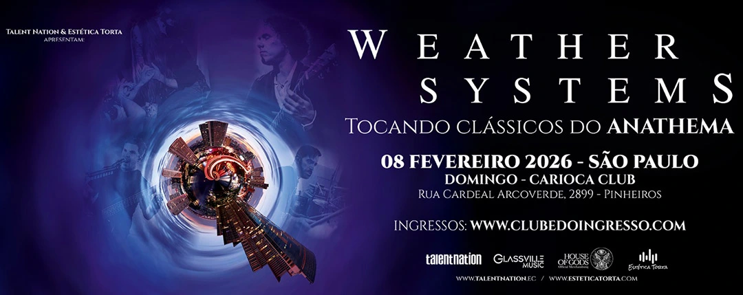 Liderada por Danny Cavanagh, um dos nomes mais respeitados do rock progressivo contemporâneo, a banda Weather Systems se apresenta em São Paulo no dia 8 de fevereiro de 2026, no Carioca Club. A noite promete ser emocionante, com um repertório dedicado aos grandes clássicos do Anathema, grupo britânico que marcou a história da música com sua trajetória única. Os ingressos já estão à venda pelo Clube do Ingresso.